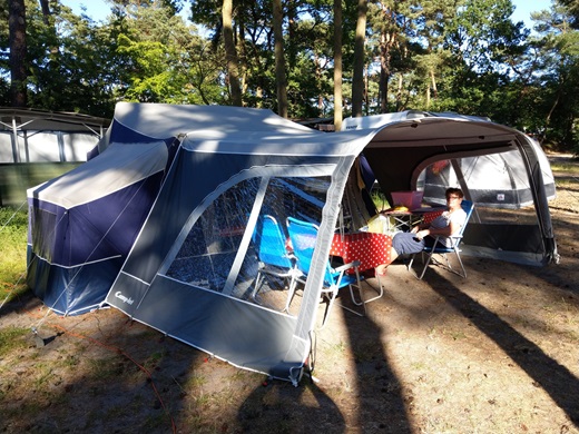 Der Zeltanhänger ist in Karlshagen (Insel Usedom) aufgebaut. Der Urlaub kann kommen.